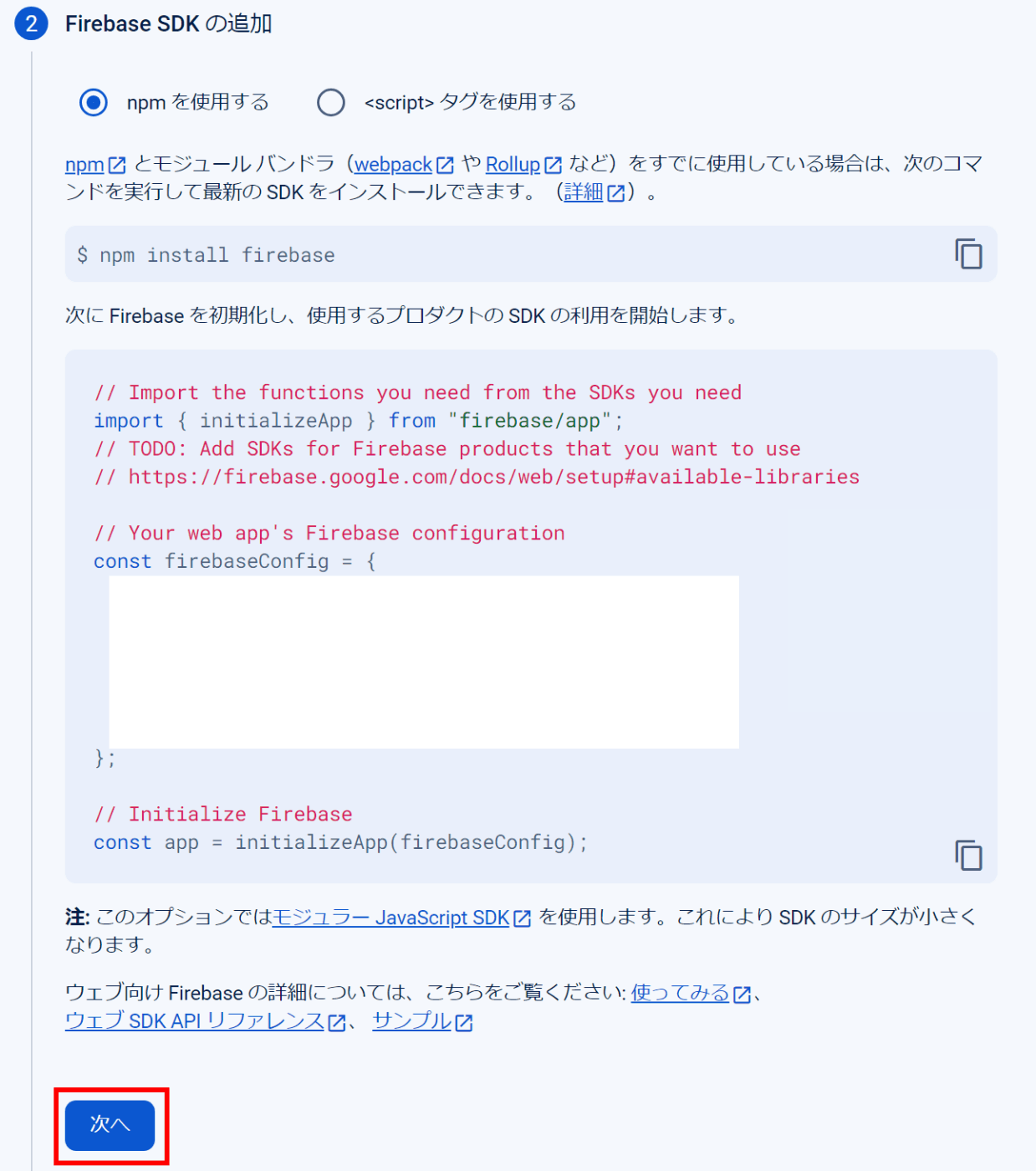 - firebaseモジュールをプロジェクトに追加