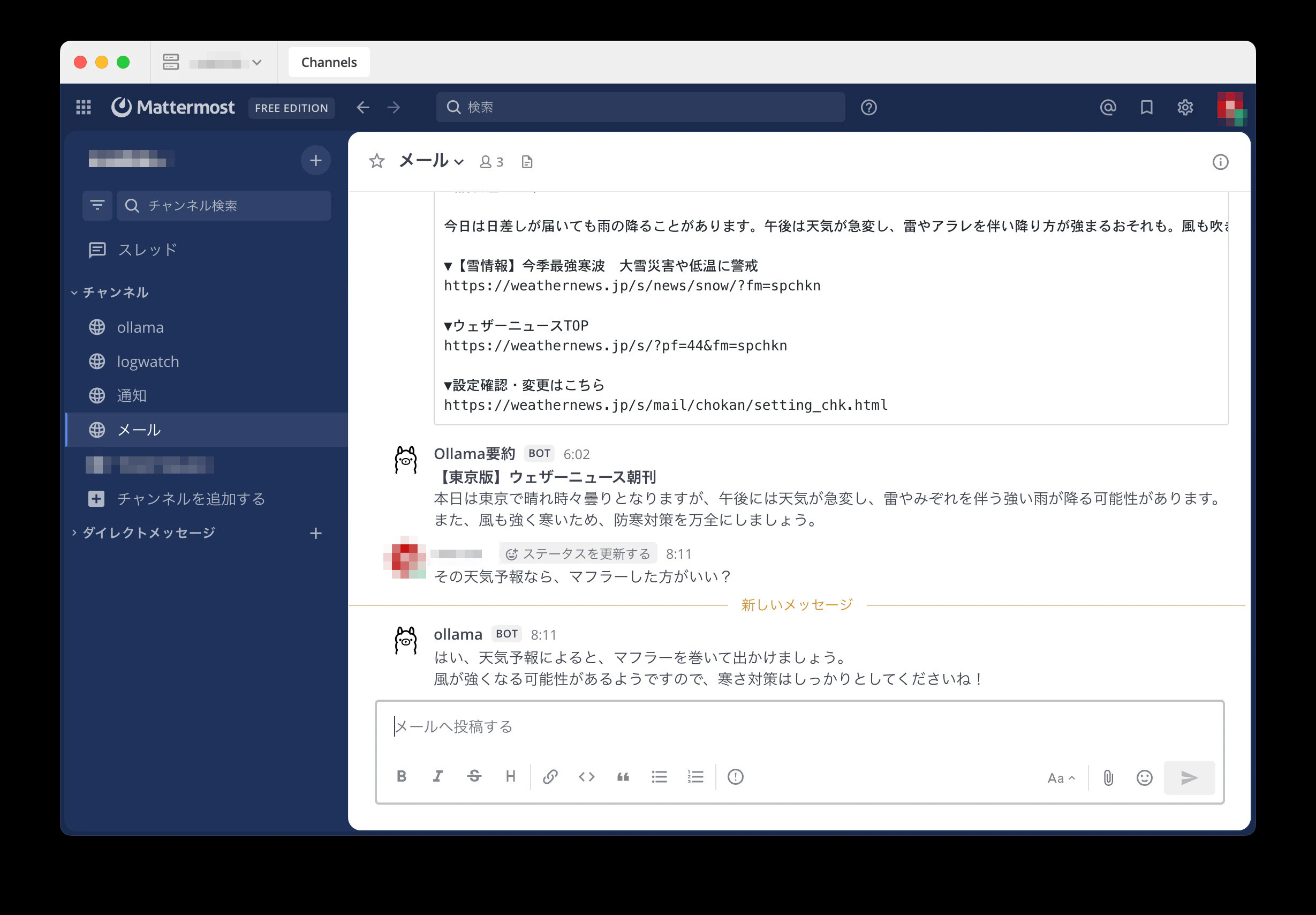 本家しらせくんはクラウド上のLLMサービスが中の人ですが、self-hosted教なので自宅内に既にいるollamaさんが中の人です。