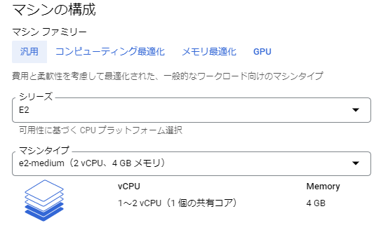 --zone=asia-northeast1-b --machine-type=e2-medium \