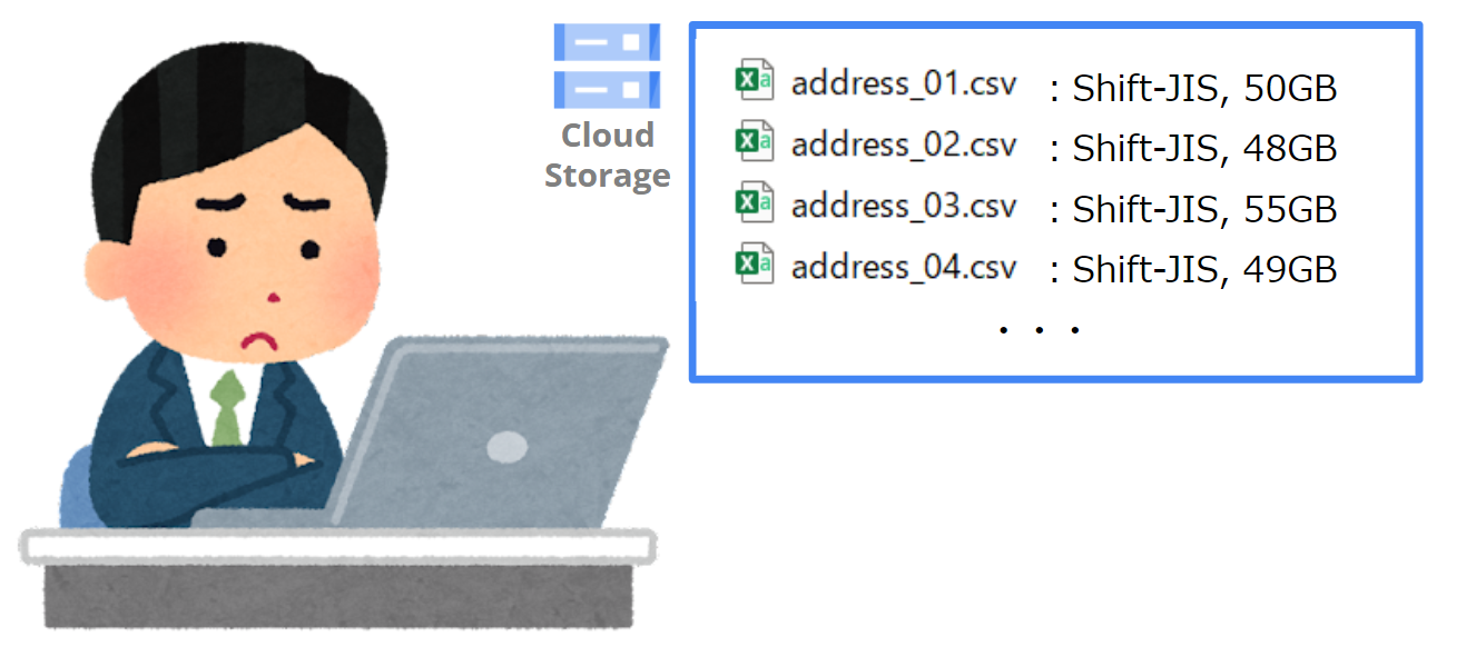 そこで今回は、数10GBのCSVファイルが大量に存在した場合でも、使い捨てのVMインスタンスを使って並列に文字コード変換処理できるような方法をまとめます。