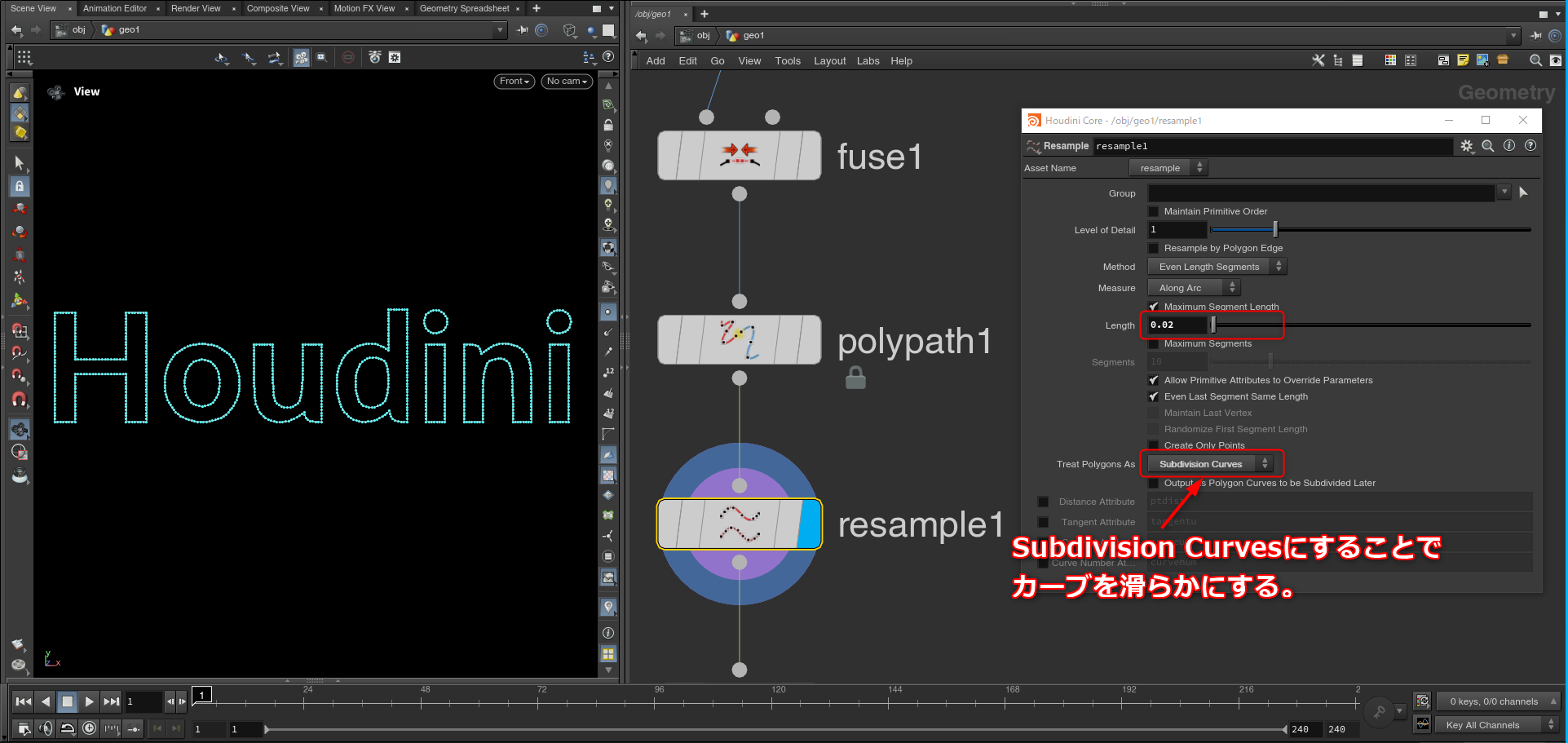 一連の流れのhipファイルは下記にアップしています。説明上開いたカーブで説明しましたが、hipファイルでは閉じたカーブで行ってます。