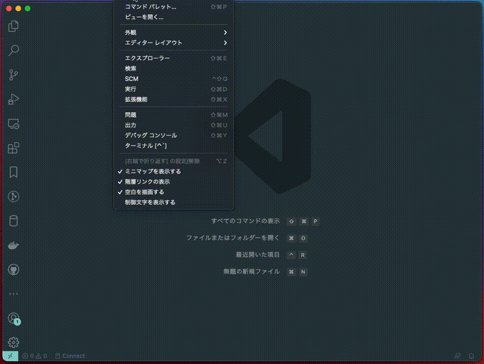 最後に、Visual Studio Codeのコマンドパレットで下記を実行し、対象のコンテナを選択します。