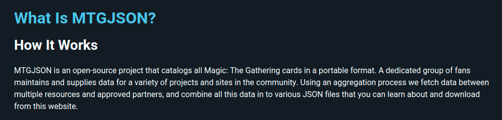 さて、15日目の記事としてMTGをハックする技術というマジックザギャザリングのAPIやデータについての記事を上げました。今回はそこで上げたうちの一つである、MTGJSONについて深堀していきます。
