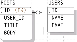 - 投稿(posts)とユーザー(users)は 1対多(1:N) の関係。