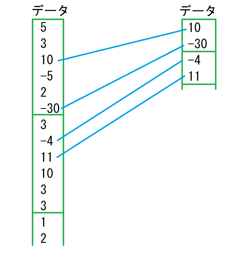 見たいのは信号の最大値と最小値なので,それを抽出する処理を作る.
