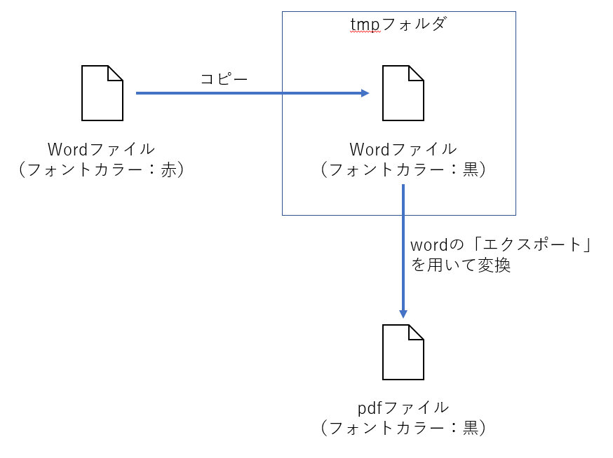 指定フォルダ内のwordファイルを全部処理したいといった場合には下記の記事と組み合わせれば行けるので,特に説明しない.