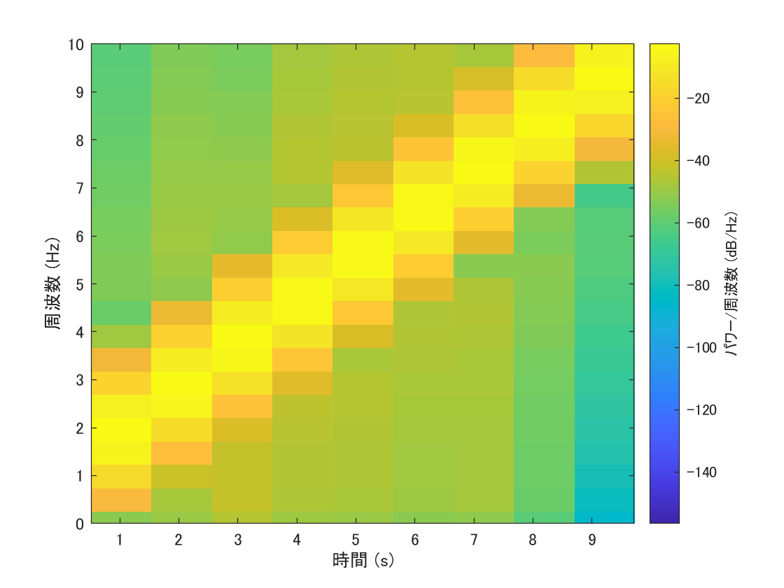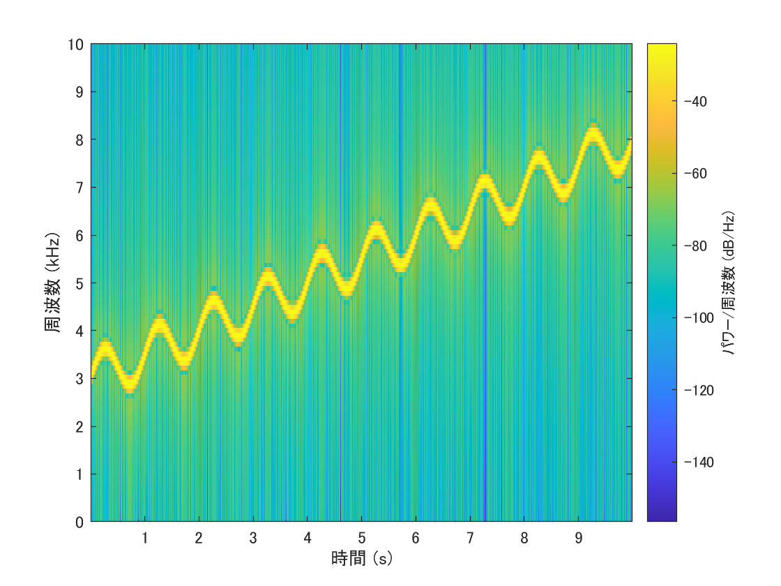 さて,スペクトログラムを求めてみると,確かに期待した結果となった.