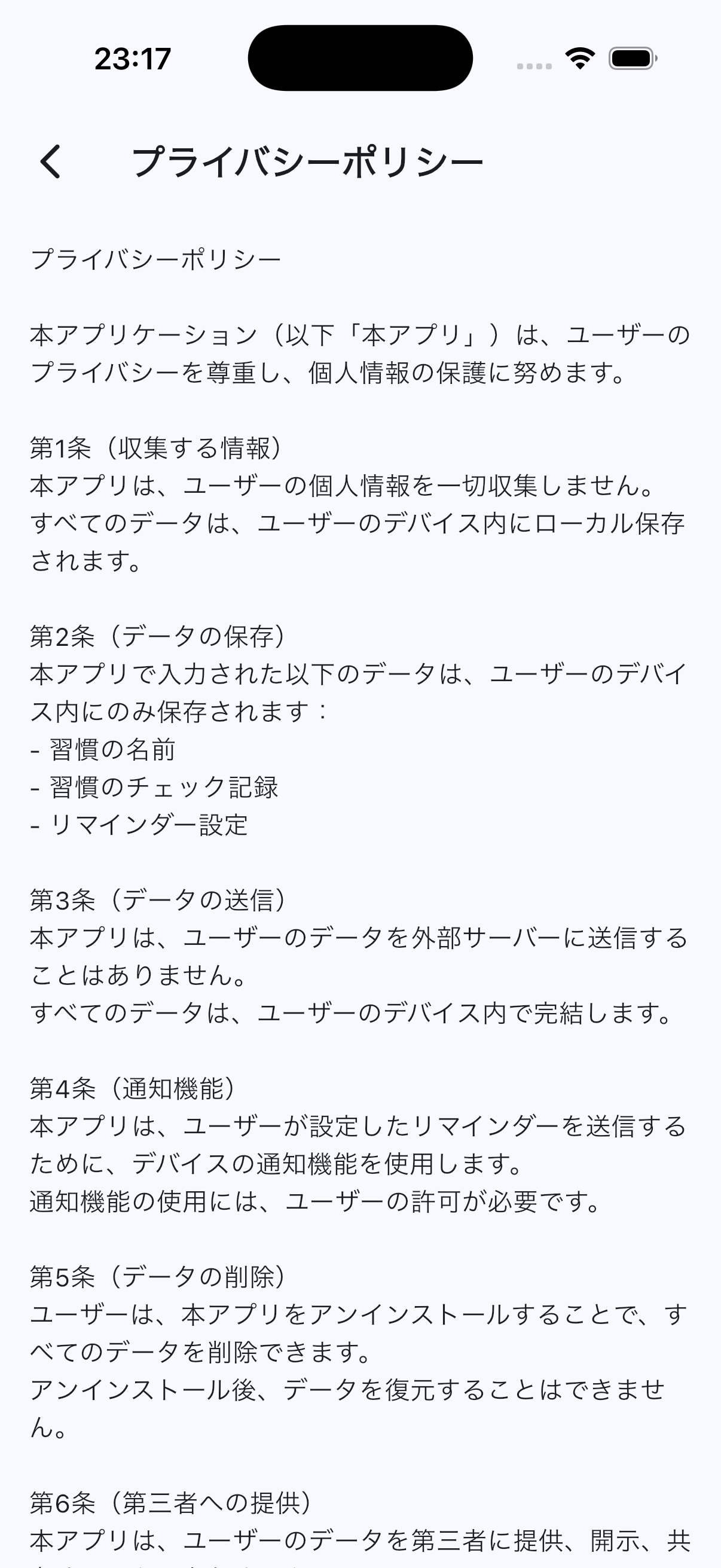 - [ ] 19. プライバシーポリシーの外部リンク設定