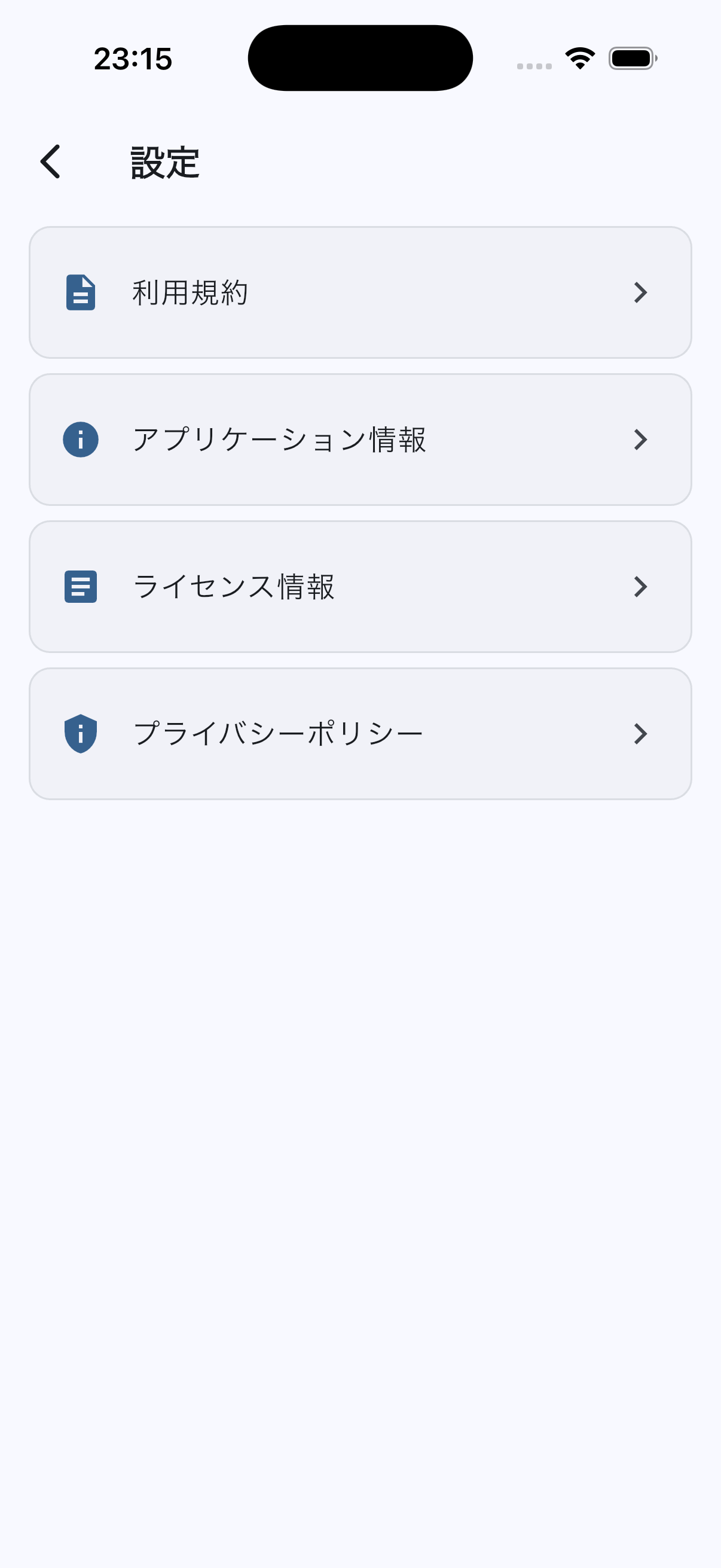 - **SettingsScreen**: アプリ設定と情報を表示する設定画面