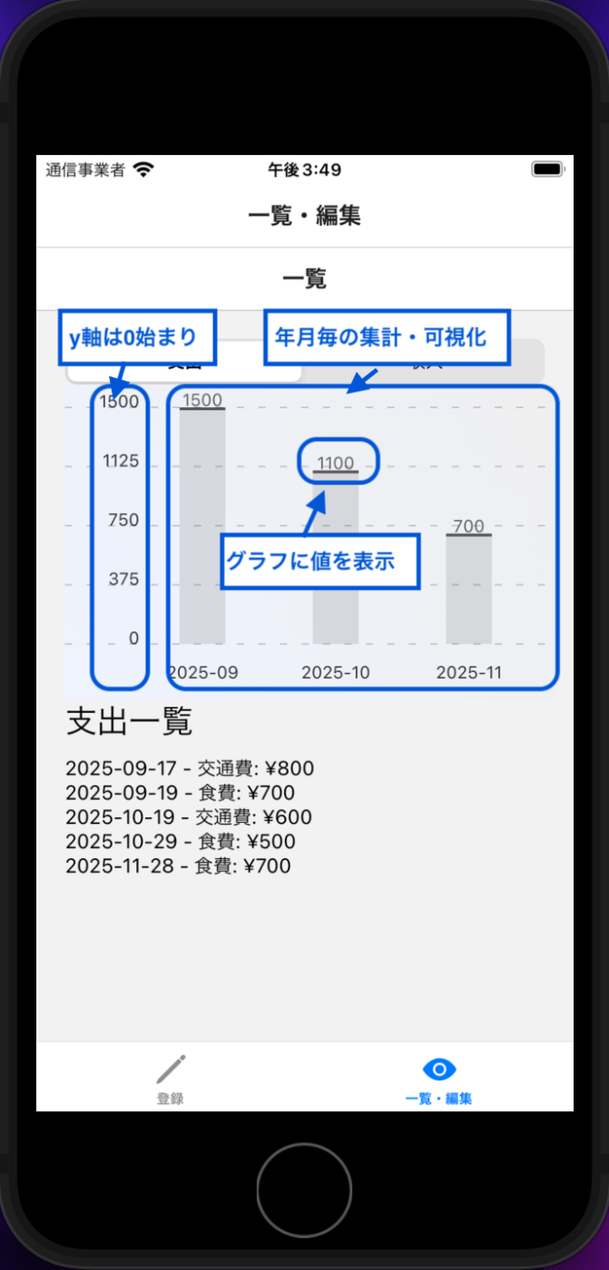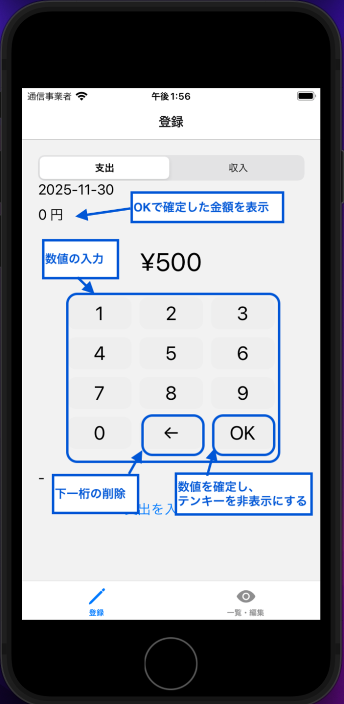 アプリ開発の学習目的のため、題材は身近なものとし、「家計簿アプリ」にしました。
