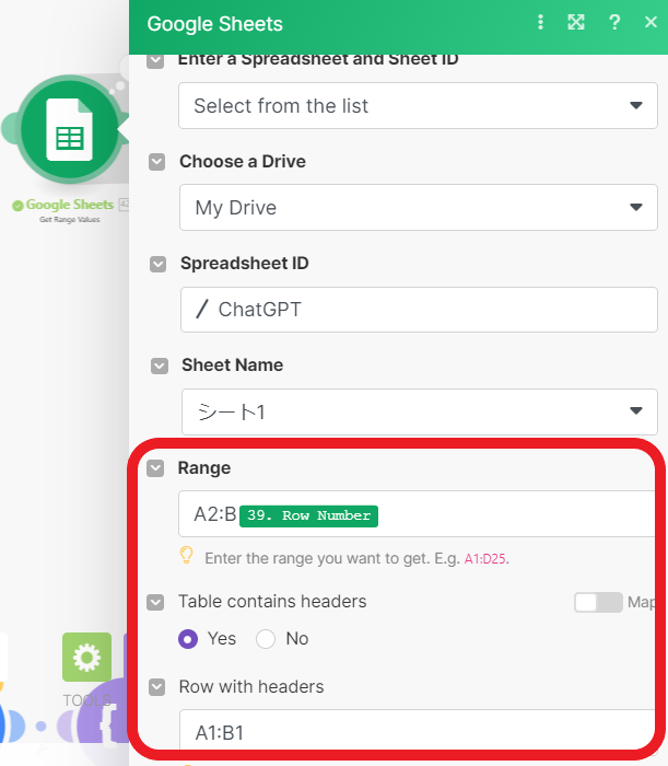 次のモジュールではGoogleSheetsに書き込まれたメッセージをすべて取得できるように設定します。
