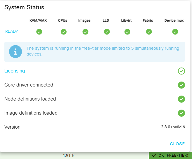 CML 2.8 is the latest feature release of CML. This release introduces a free-tier version of the product allowing you to start up to 5 nodes without a license.