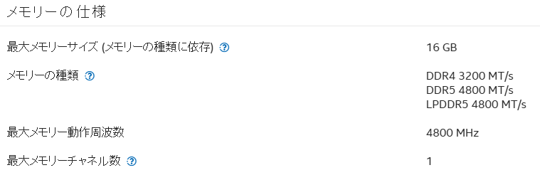 Nシリーズはメモリが1チャネルかつ16GBまでということでした。