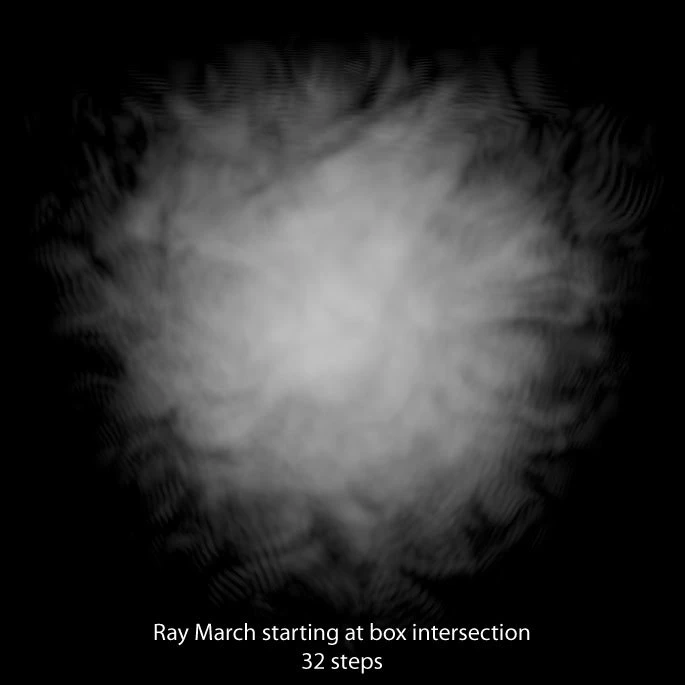 もし、ボリュームが解析的な関数である場合、ダイレクトにその結果を計算するかもしれませんが、もしボリュームがテクスチャに保存されたものであれば、ボリュームを複数のステップによって各ステップごとにテクスチャから探す必要があります。