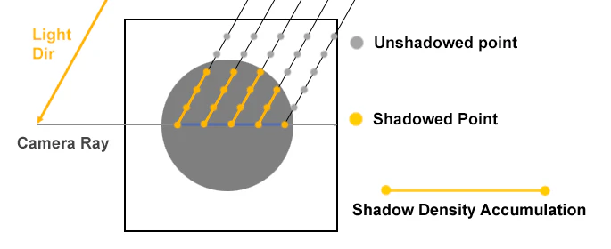 ひとつの方法は、ディープシャドウマップのような、ボリュームテクスチャの内側の雰囲気を事前計算することです。
