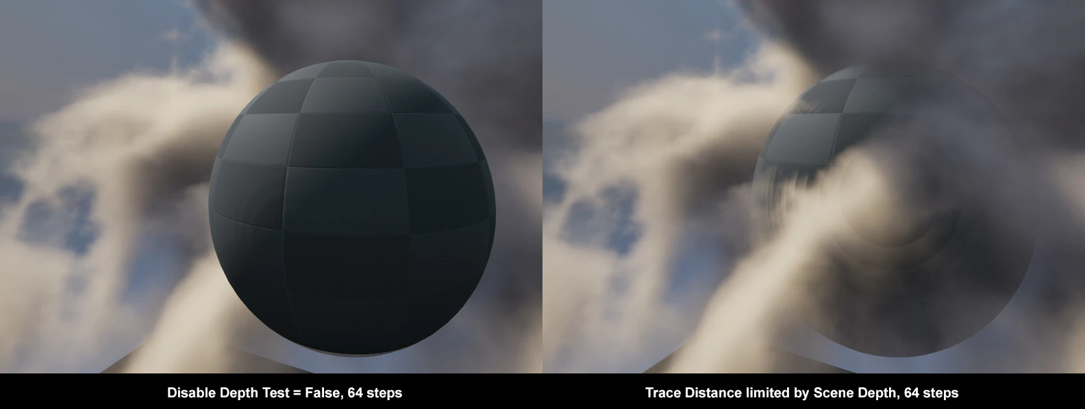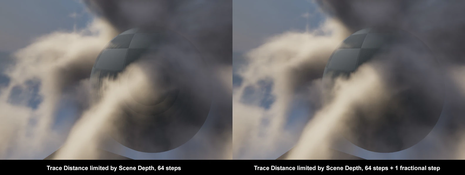 上の例のように、少ないステップ数が使用されると、距離が実際のコンテンツとあまり一致しなくなり、スライスアーティファクトが目に見えるようになります。