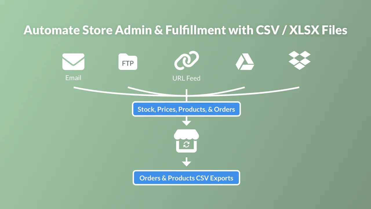 | 主な特徴 | - スプレッドシートのインポート・エクスポートを自動化 - 在庫・価格の同期が可能 - FTP, Email, Google Sheets 連携でファイルを送受信 - 注文時に自動で CSV / XLSX を出力してサプライヤーへ送信 - フィールドマッピングで柔軟にカラムを対応付け |