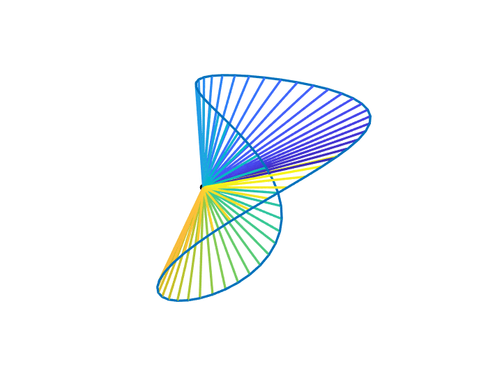 plot3([0, r(k)* cos(t(k))], [0, r(k) * sin(t(k))], [0, sin(t(k))],...