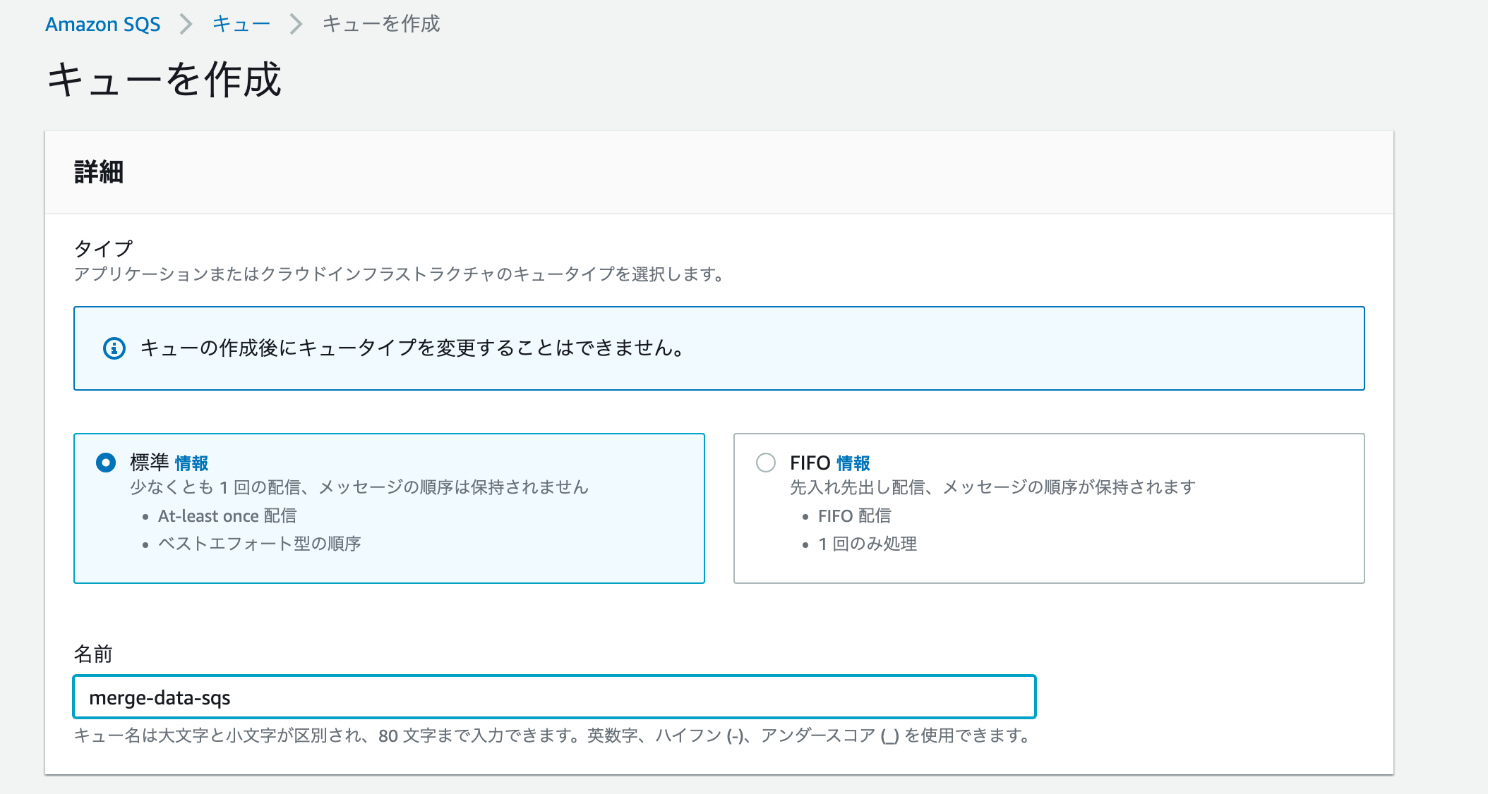 SQSのキューを作成