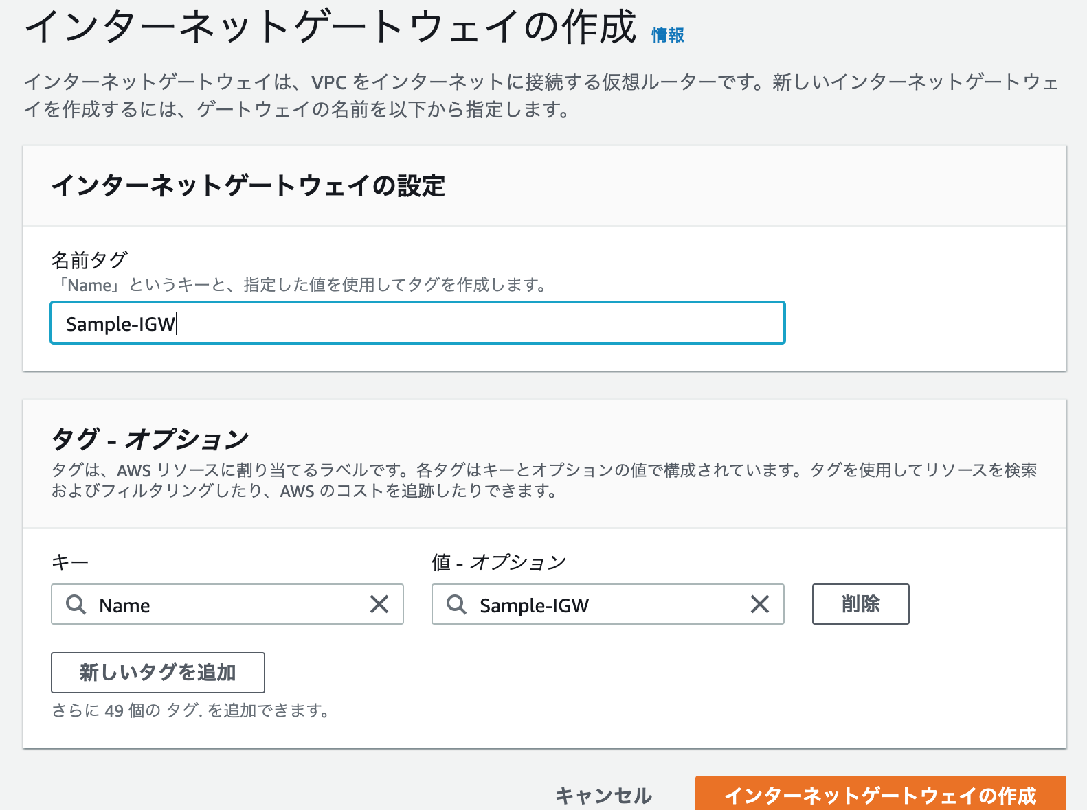 - そのため、EC2用にrtbを新たに作成。IGWをルートに追加する。これでEC2用サブネットはPublicサブネットになる(下の画像)。