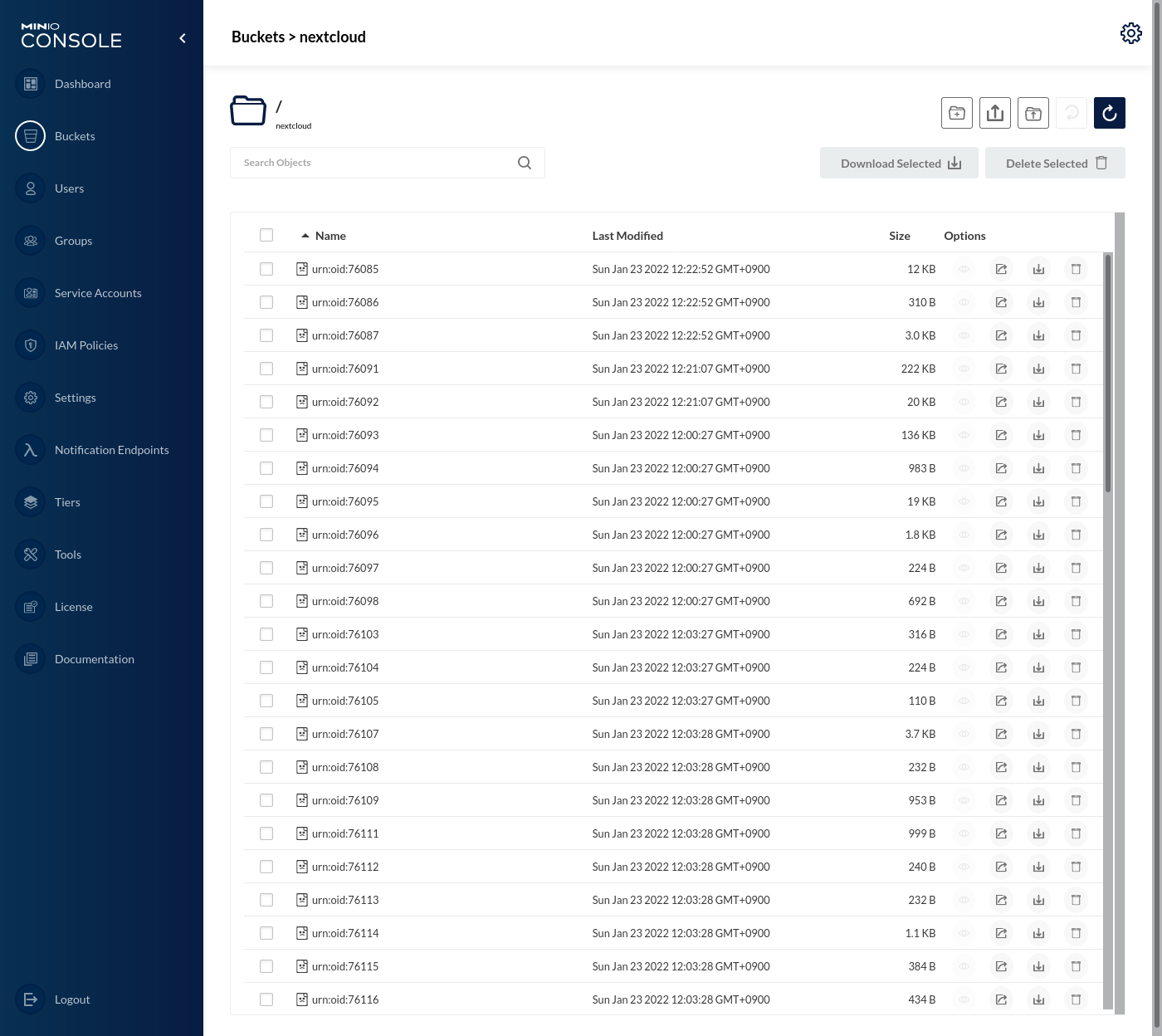 - MinIO server: RELEASE.2022-01-08T03-11-54Z