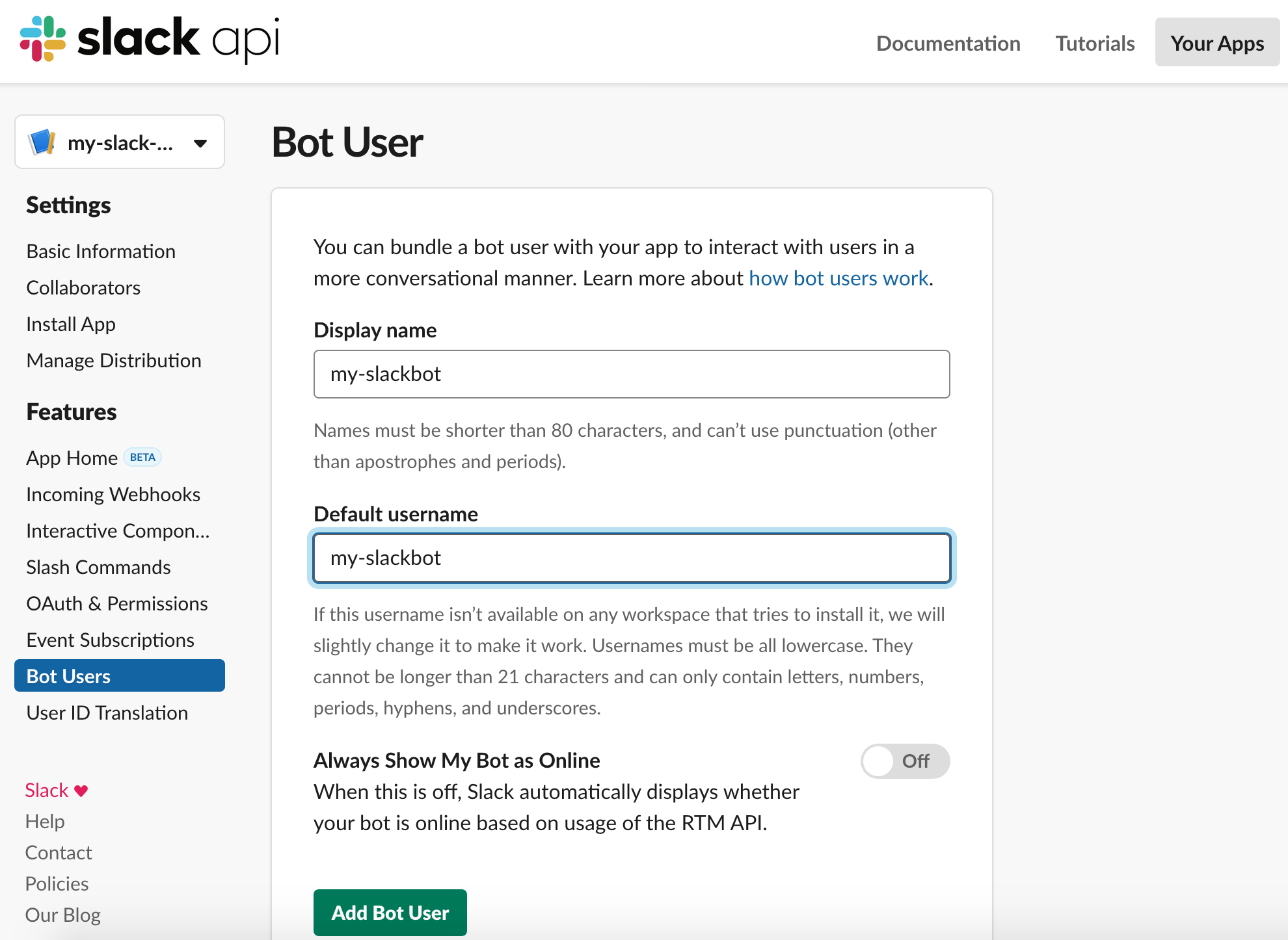 https://github.com/slackapi/python-slackclient/blob/master/tutorial/01-creating-the-slack-app.md