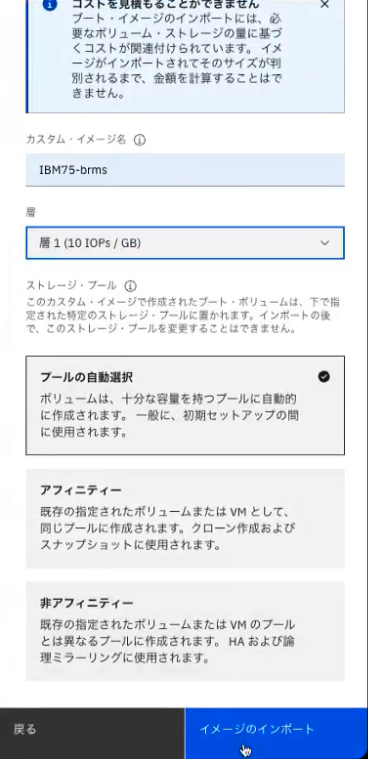 イメージは先ほどインポートした「IBM75-brms」を選びます。