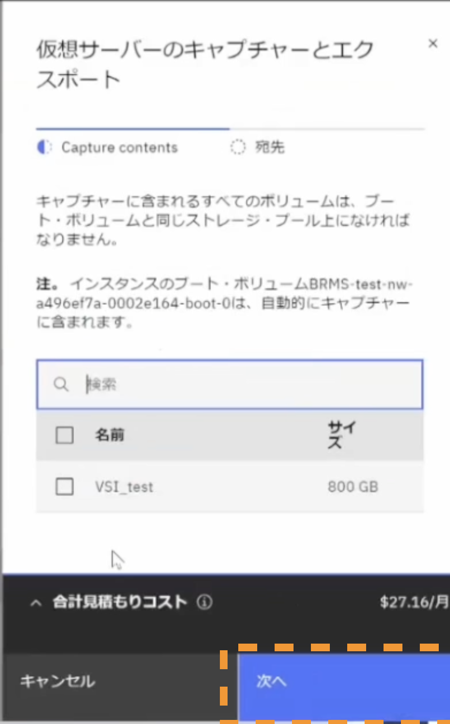 インスタンスのブートイメージは自動的にキャプチャーに含まれているため、今回はそのまま「次へ」をクリックします。