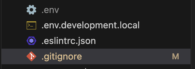 2. githubのリポジトリから削除する前に、「.gitignore」ファイルに「.env.development.local」ファイルを追加しておこう![]()