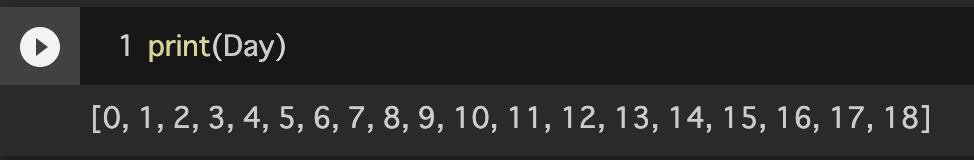 変数Dayは0〜18までの19個の数字のリストです。