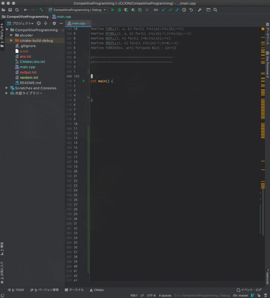 (真ん中だと、ちょっと書きづらくmain関数が上側のほうが広くかけるので嬉しい)