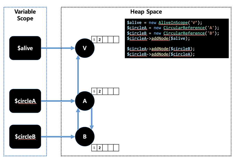 $circleA = new CircularReference('A');
