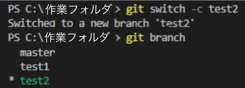 ちなみに、ブランチの作成と切り替えを同時に行うコマンドもあります。