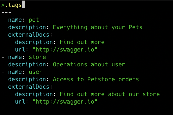 CLI実行後、画面上部にクエリを入力する箇所があるので、そこにクエリを入力してyamlをインタラクティブに絞り込んでいきます。
