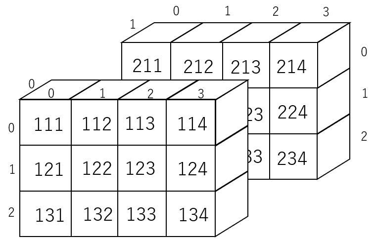 ここではサイズ2×3×4の3次元の配列を題材とします.