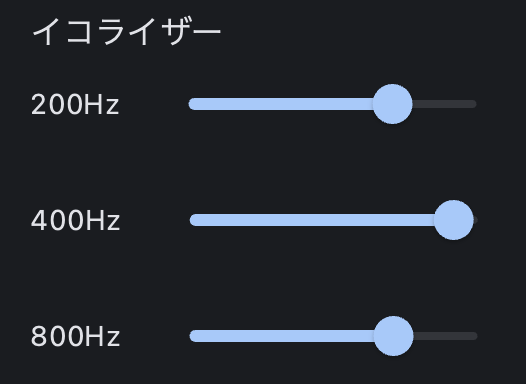 200Hz, 400Hz, ... ,12800Hzでそれぞれに音量を増減することができます。