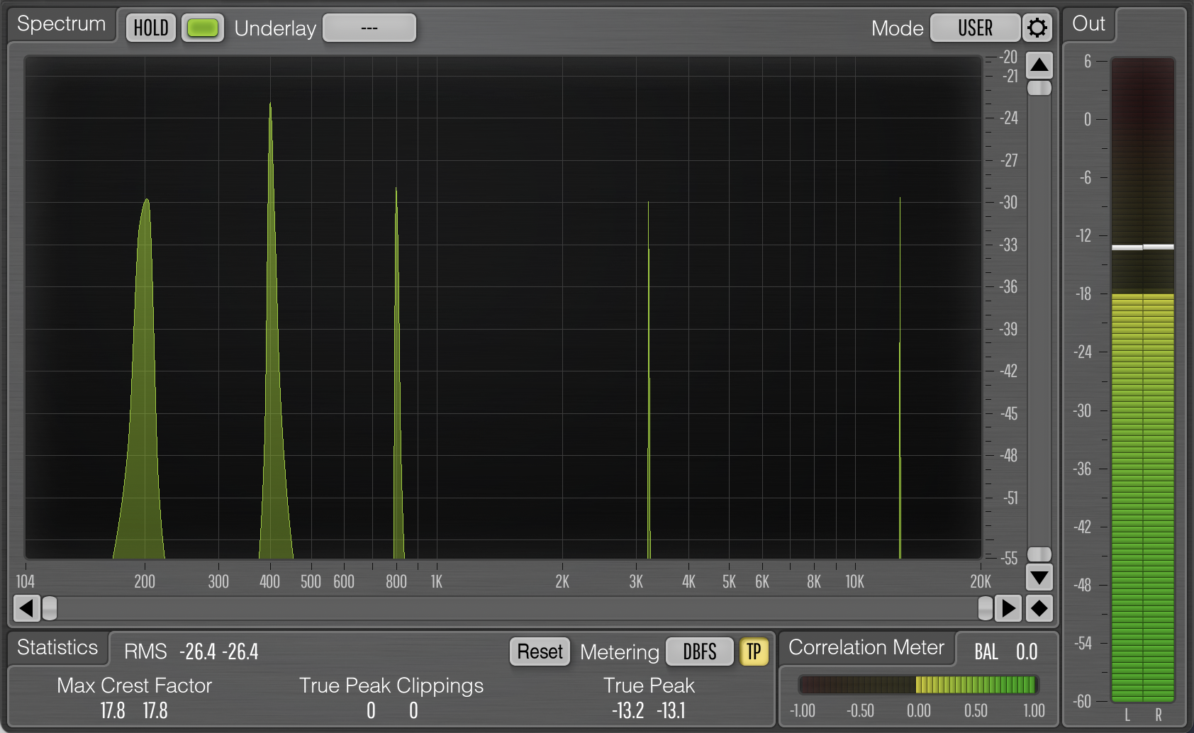 400Hzの部分のみ音量が増加していることがわかると思います。