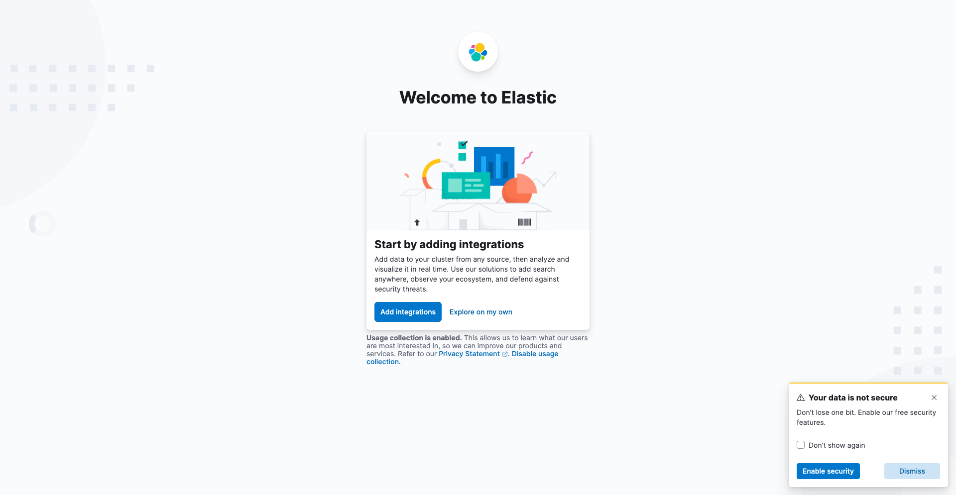 http://192.168.56.10:5601にアクセス - 「Explore on my own」を押下