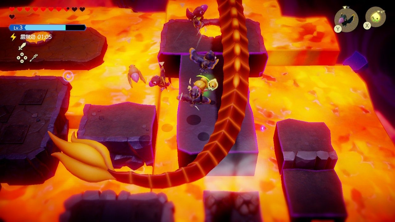 どんな類のゲームなのか3行でいうと、謎解き+アクションゲームで、敵と戦ったりダンジョンを攻略するゲームです。主人公が多種多様な「カリモノ」を使いこなし、正解がひとつではない謎解きをプレイヤーの好みの方法で解いていくっていうゲームです。