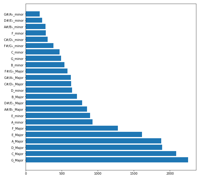 キーは全部で24種類あるのですが、もちろんデータ数は均等ではありません。