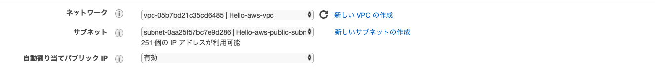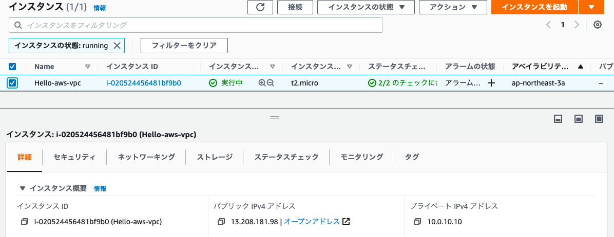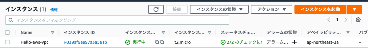 publicサブネットの中に仮想サーバーを設置します。 インスタンスの起動をクリック