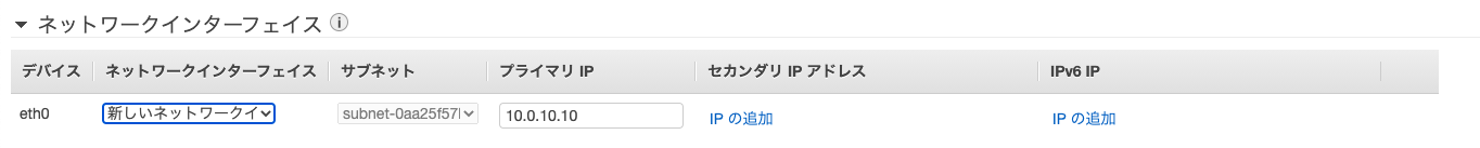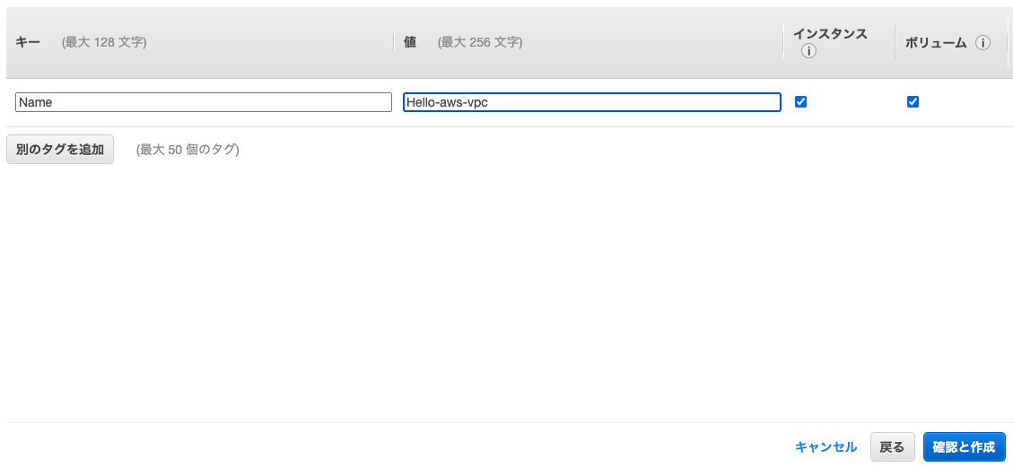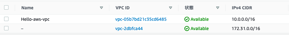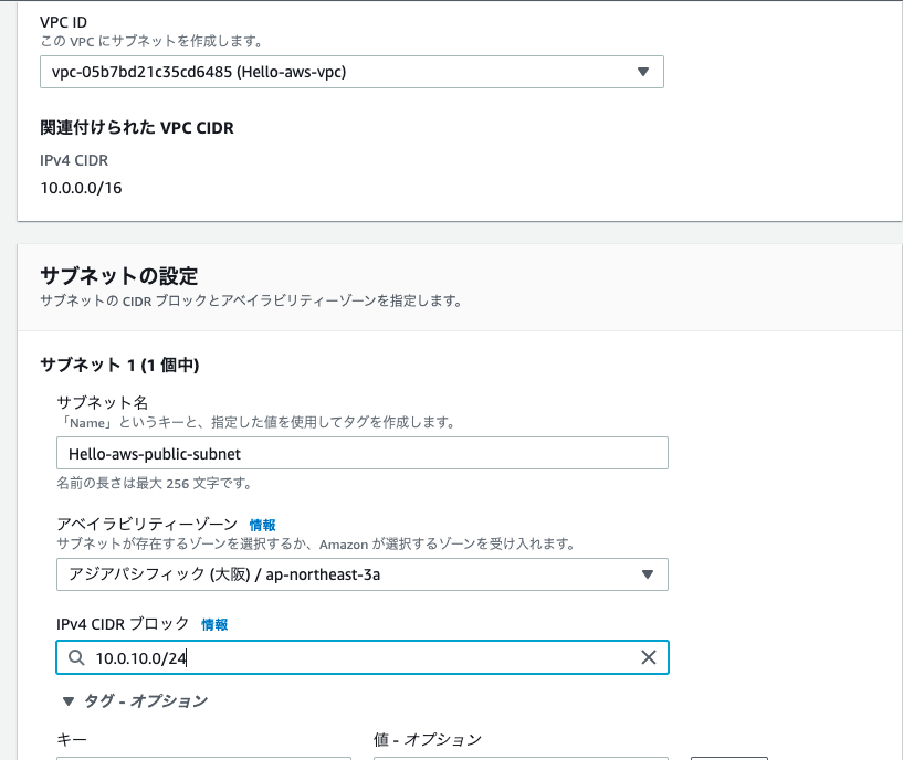 - IPv6 CIDEブロック amazonが用意しているIPv6用を紐づけるためのもの(今回は使用しない)