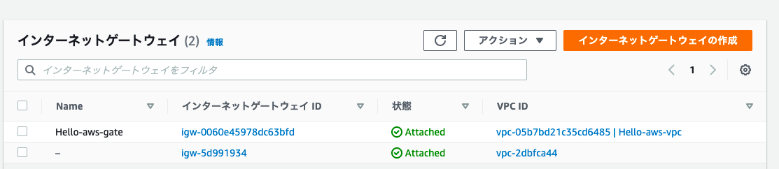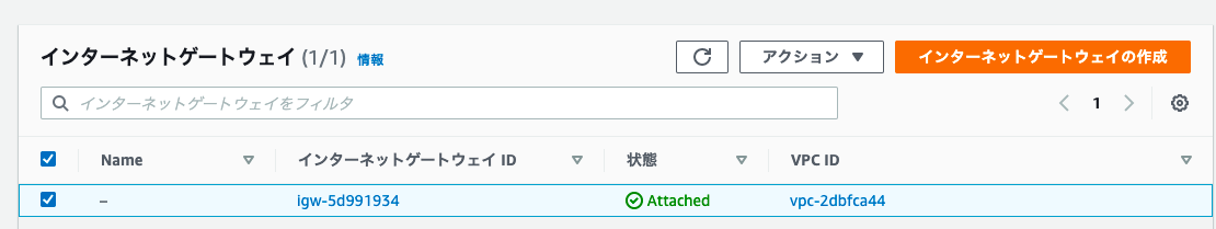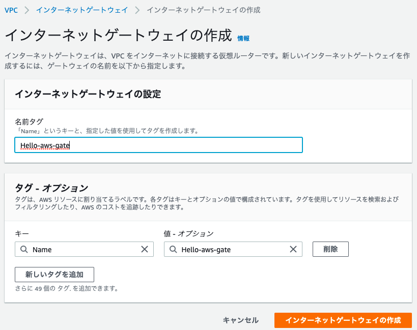 - インターネットゲートウェイの作成 インターネットゲートウェイの作成をクリックします。