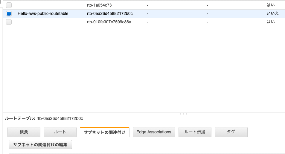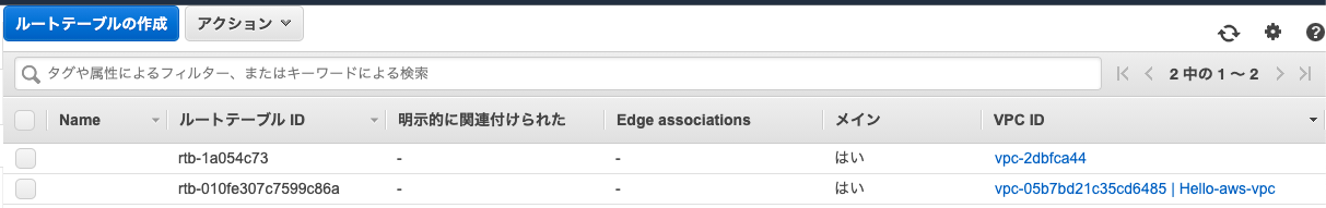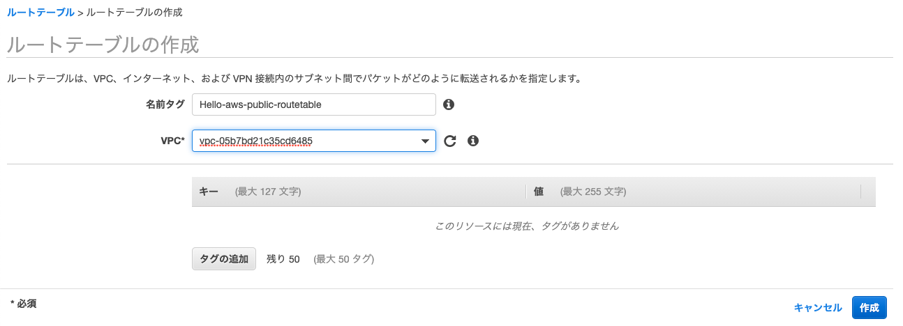 - ルートテーブルの作成 左上のルートテーブルの作成をクリックします