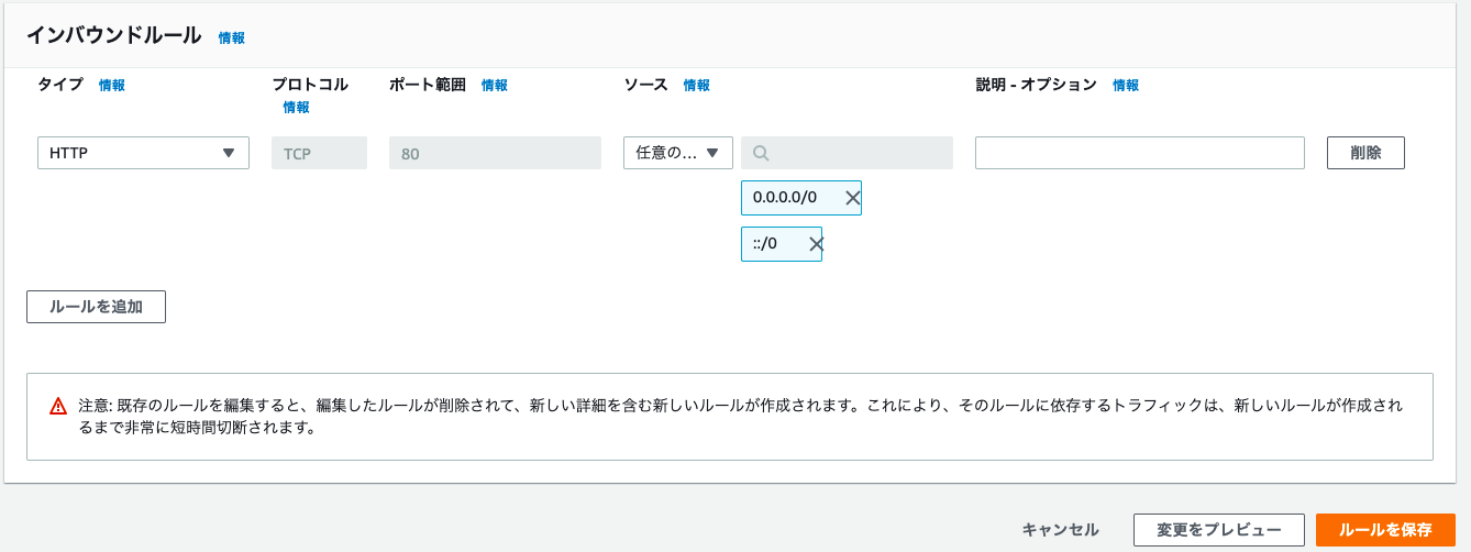 - httpアクセスできるようにポート番号80番を開放 以下で詳しく説明