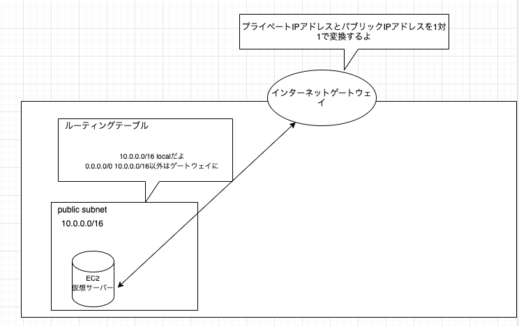 - ルーティングとは IPアドレスがどこにあるのか教える作業。具体的に言えば目的のIPアドレスがVPCの中にあるのかVPCの外にあるのかを識別させる。