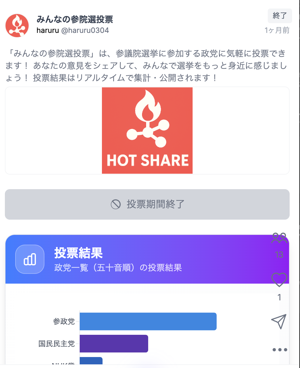 - 投稿範囲:HOT SHAREで公開する範囲です