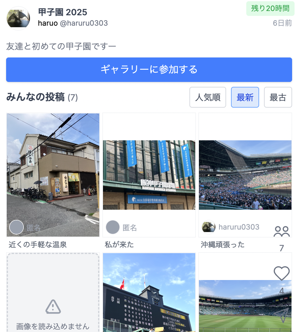 - 参加条件:ギャラリー参加や投票など、誰とコンテンツを作るかを決められます。友人、ファン、家族 etc