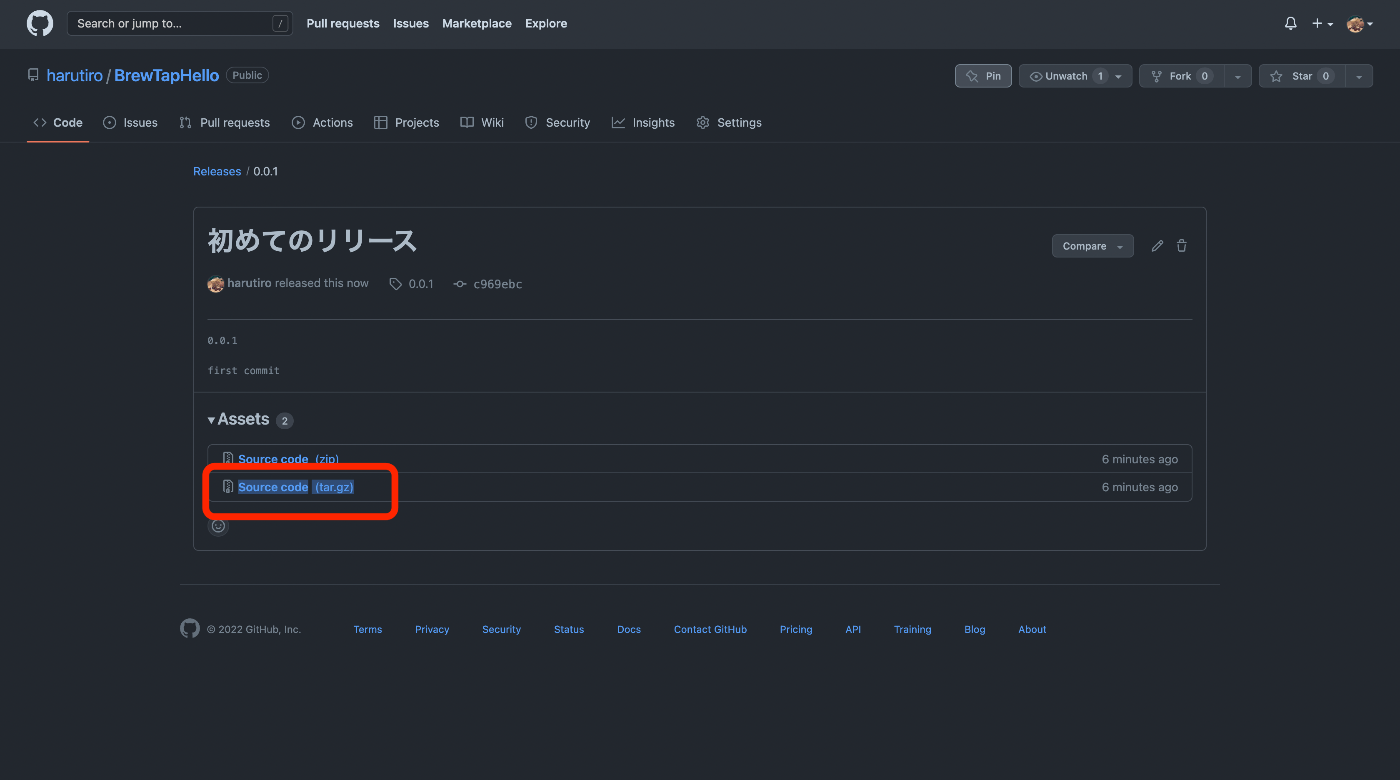 リリースをしたら、tar.gzの方のリンク先のアドレスをコピーしておきましょう