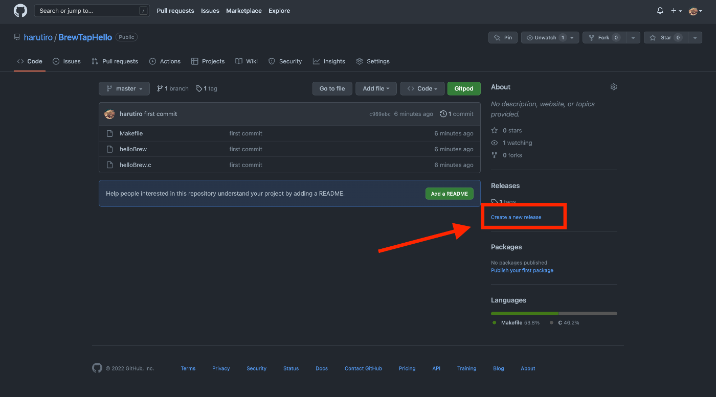 それでは、Formulaファイルを作成して、”homebrewのリリース関係を管理するリポジトリ”を作成していきましょう。